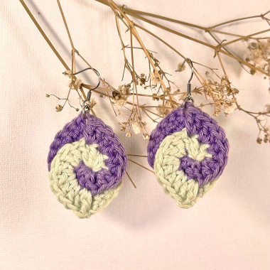 These magnificent leaf-shaped earrings are entirely hand-crocheted with love from soft recycled cotton. Their stainless steel hooks guarantee perfect comfort and an impeccable hold.