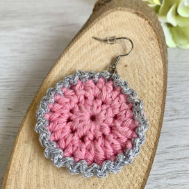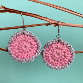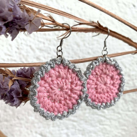 These super earrings are crocheted using recycled cotton thread. The enamelled charm adds a shiny touch that contrasts with the cosiness of the...