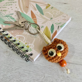 It was hand-crocheted with acrylic wool, colour chocolate and its little beak was embroidered with vibrant yellow thread. I chose a pretty wooden bead to finish off this pretty key ring.