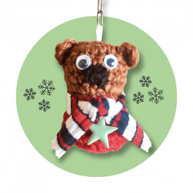 100% handmade, he's unique with lots of little details, like his little scarf made from recycled fabric, his green enamelled metal star and his eyes that change when he changes position, giving him a unique personality.