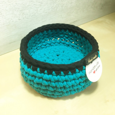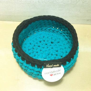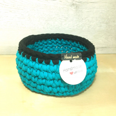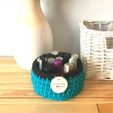 Pequeña cesta turquesa - útil y decorativa - pieza única - hecha a mano