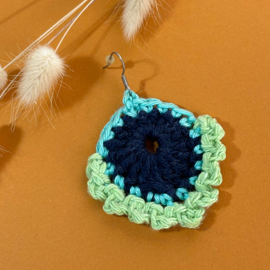 Ganchos de acero inoxidable hipoalergénico. Tejido con hilo de algodón reciclado eco-responsable.  Modelo único.