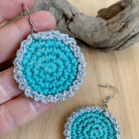 Boucles d’oreille ronde avec bord argenté confectionnées à la main. Très agréables à porter grâce à leur légèreté, elles apportent une touche brillante et moderne à ton look.
