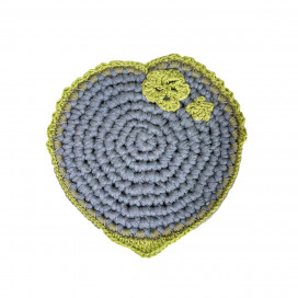 Ce dessous de plat en forme de cœur, je l'ai fait à la main, rien que ça ! Avec du tissu recyclé et du coton naturel, il est là pour protéger tes meubles avec style. C'est une pièce unique, rien que pour toi !