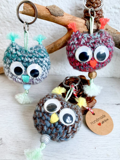 Originals car ce sont tous des pièces uniques avec des détails soignés comme leur petit bec brodé et les jolies perles en bois qui apporte la touche final de ces jolis porte-clés hibou.