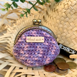 Ce petit porte-monnaie aux couleurs très douces, lila et rose, a été crocheté à la main avec du coton naturel recyclé. Ses jolies couleurs pastel en font un modèle très féminin.
