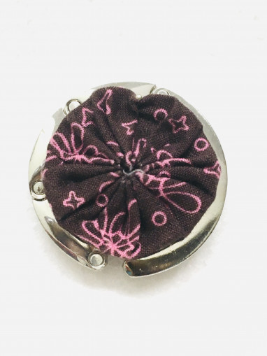 Accroche-sac décoré d'un Yoyo de tissu, couleurs: noir et blanc. Dessous antidérapant. Idéal pour accrocher son sac lors d'un moment détente en...